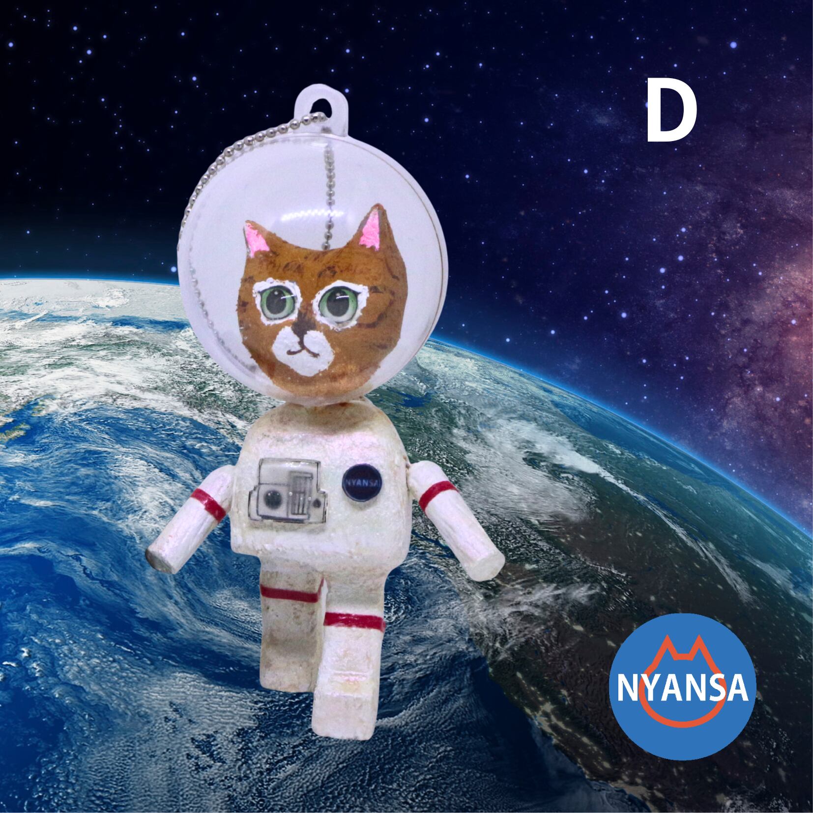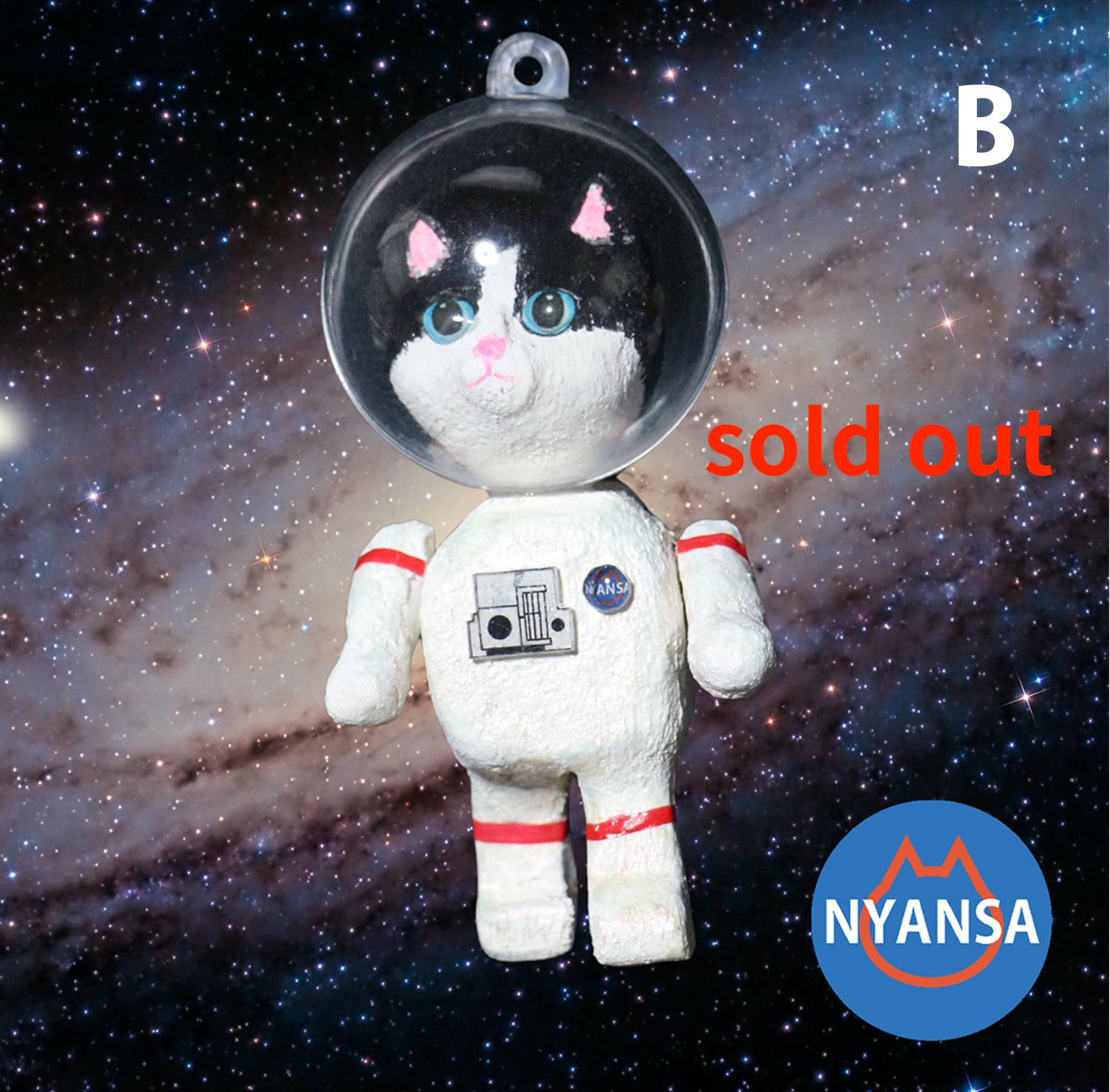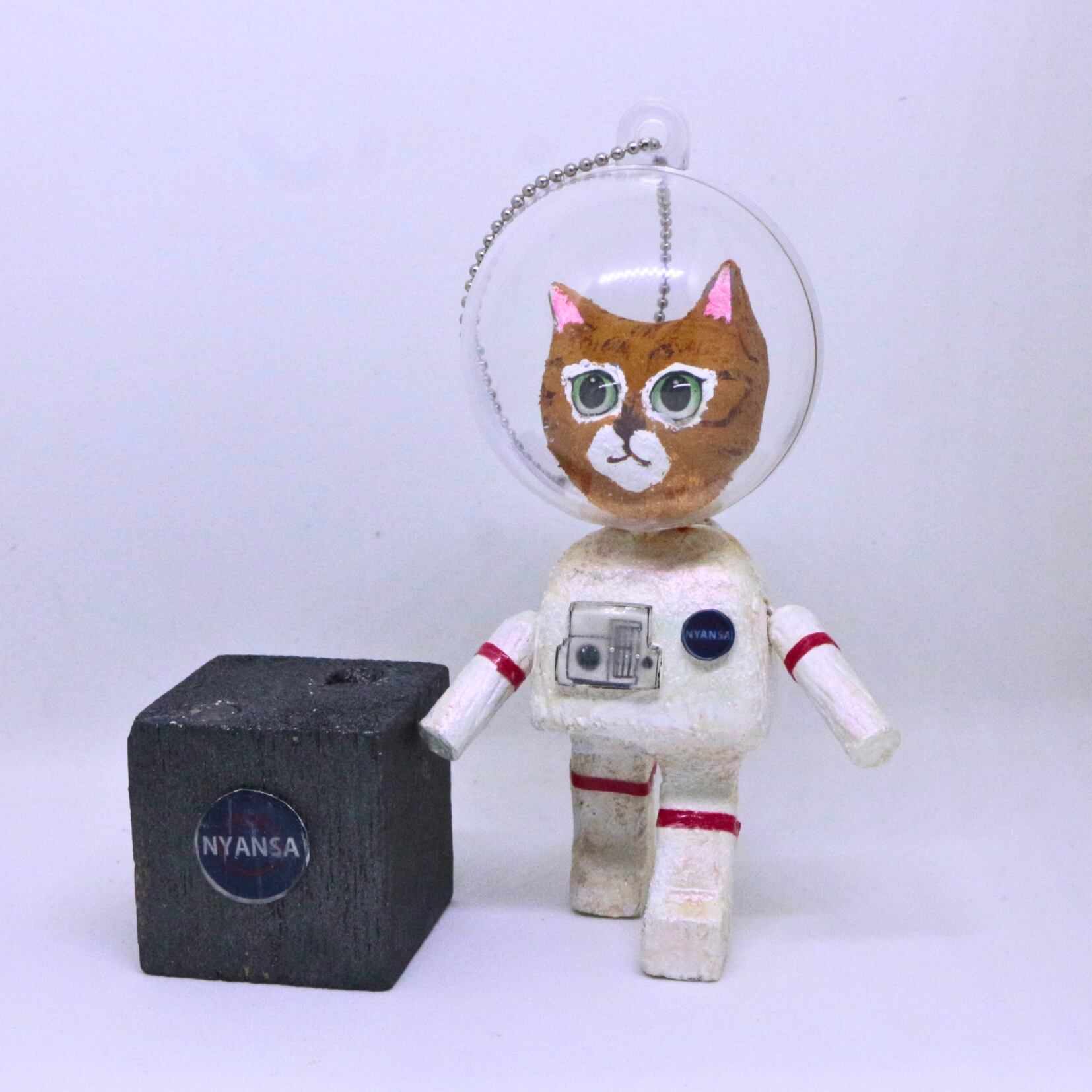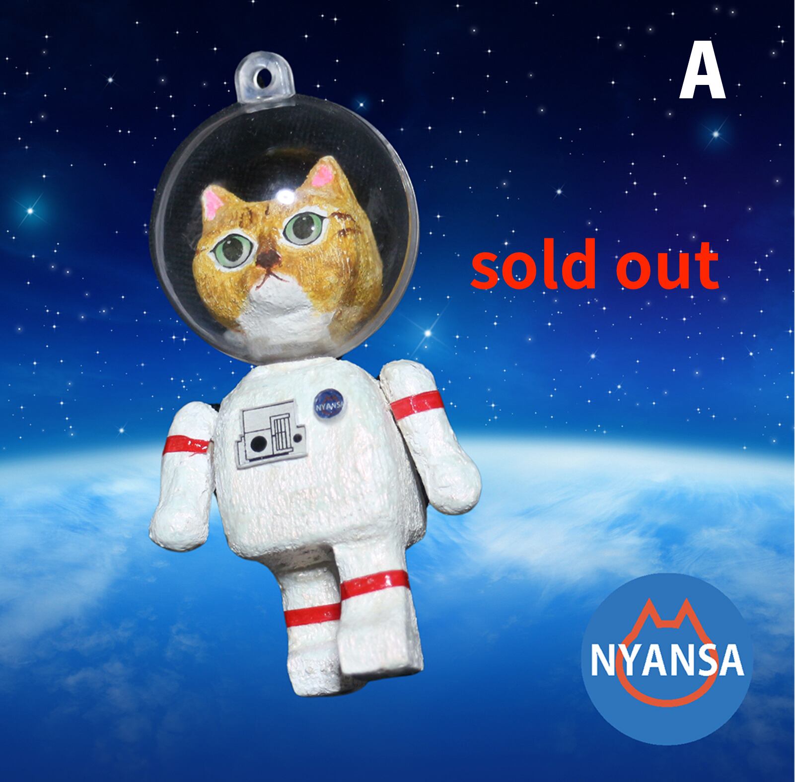 NYANSA(ニャンサ)のマークの入った宇宙服をきた猫です。