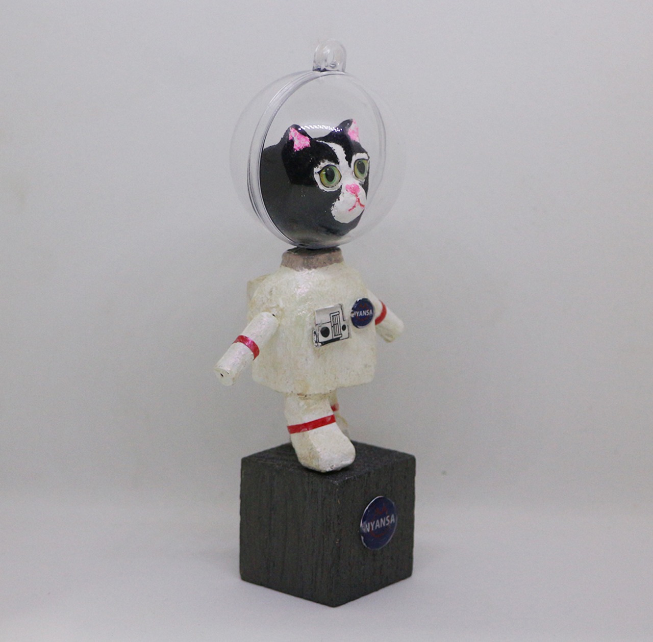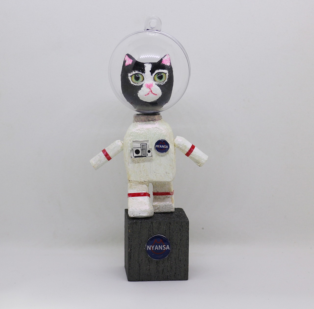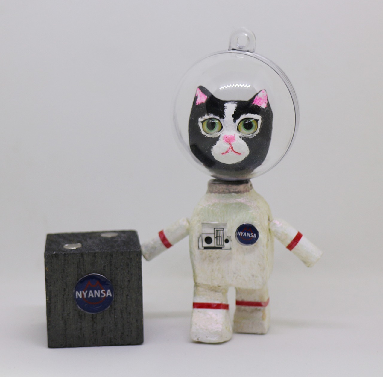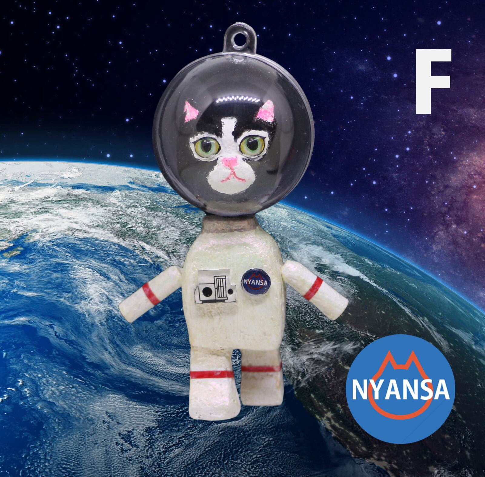 NYANSA(ニャンサ)のマークの入った宇宙服をきた猫です。